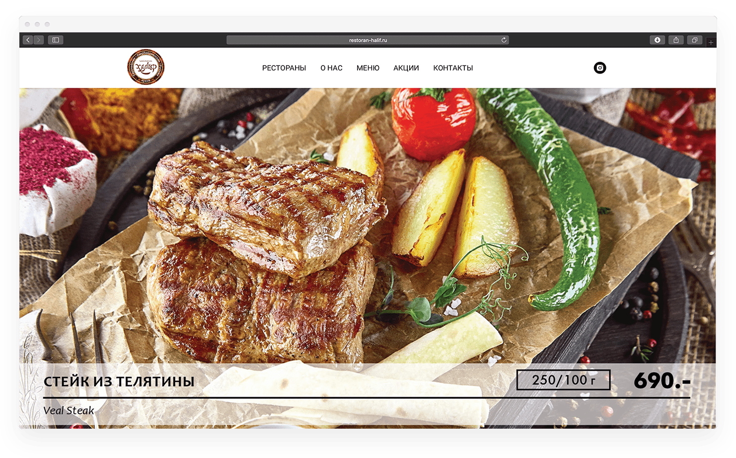 Разработать современный сайт с удобным отображением меню, быстрым доступом к контактам ресторанов и мобильной адаптацией.