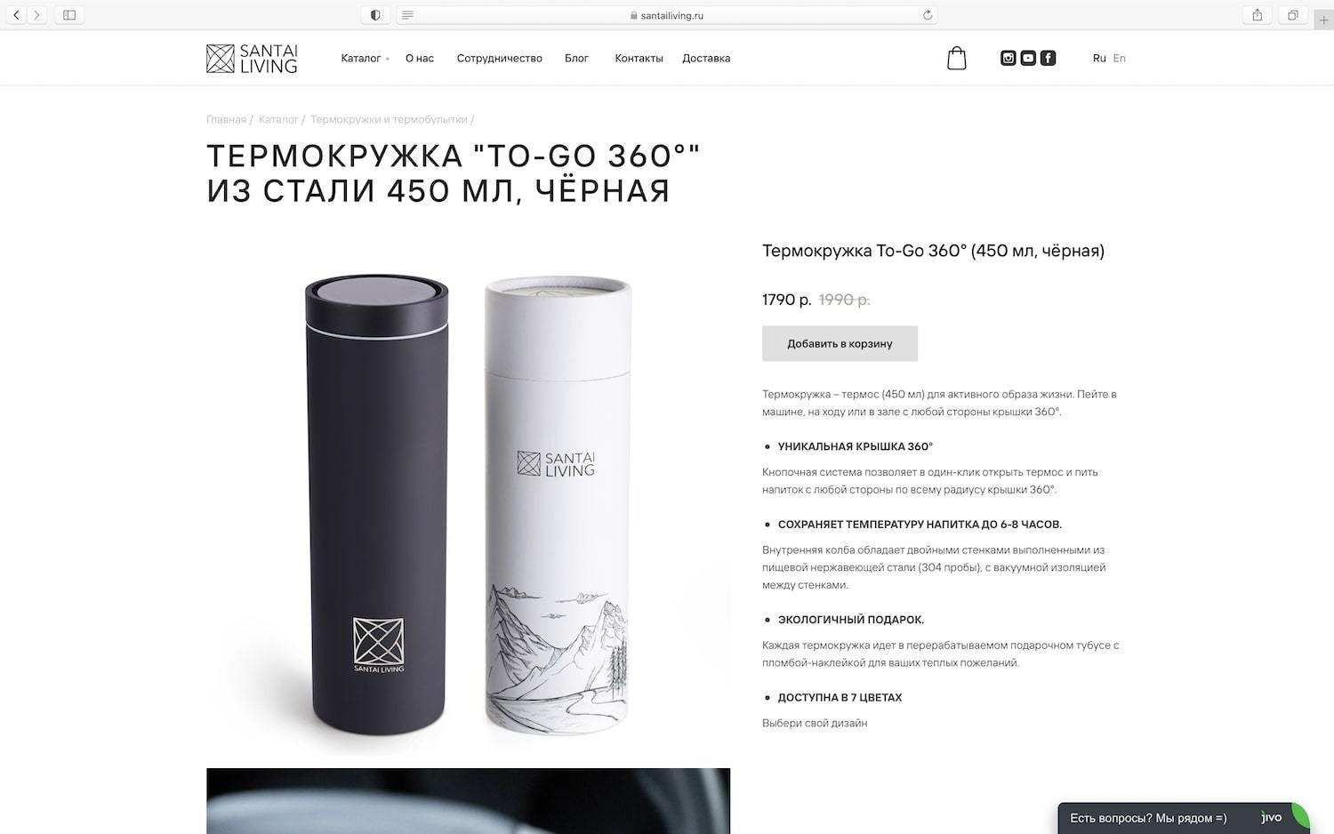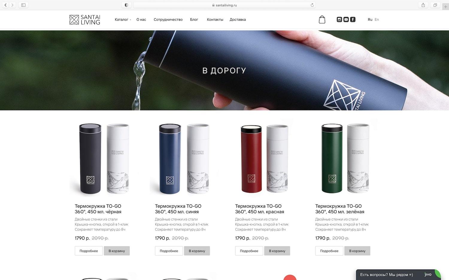 Santai Living — производитель стильных и функциональных товаров для ежедневного пользования. Ассортимент насчитывает более 100 позиций в категориях термокружки, термосы и банки.